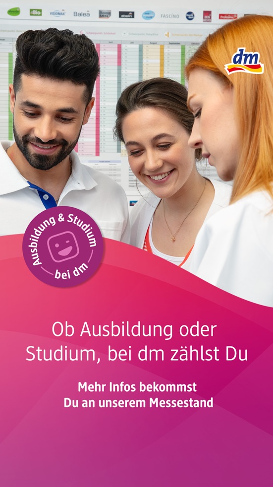 dm-Märkten kommen kaufmännische Inhalte mit aktuellen Trends und Themen wie Gesundheit, Kosmetik oder Ernährung zusammen.